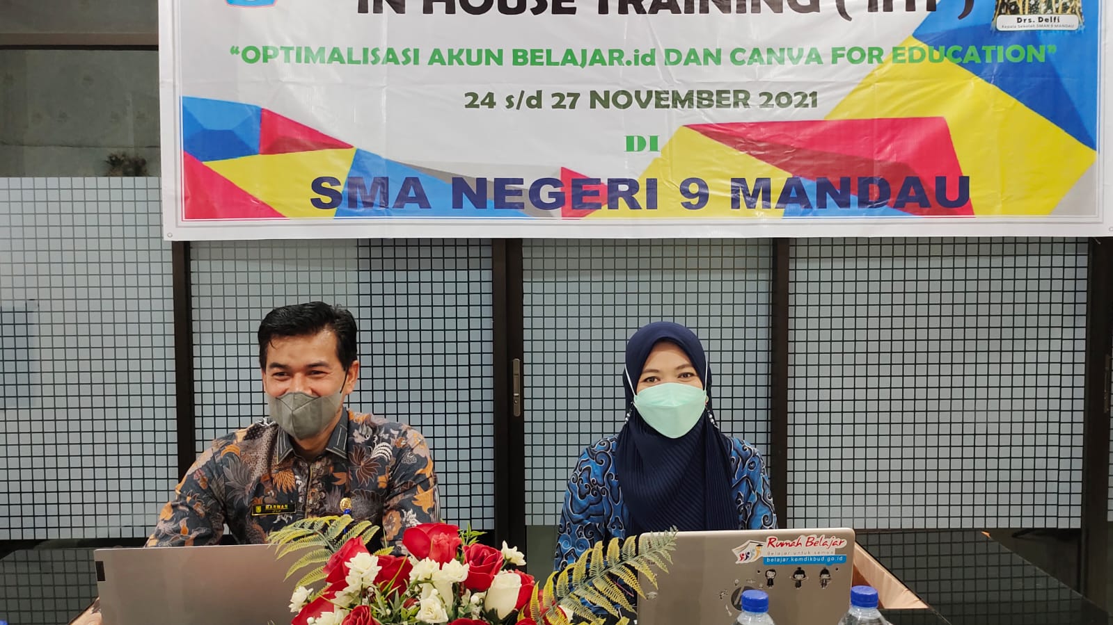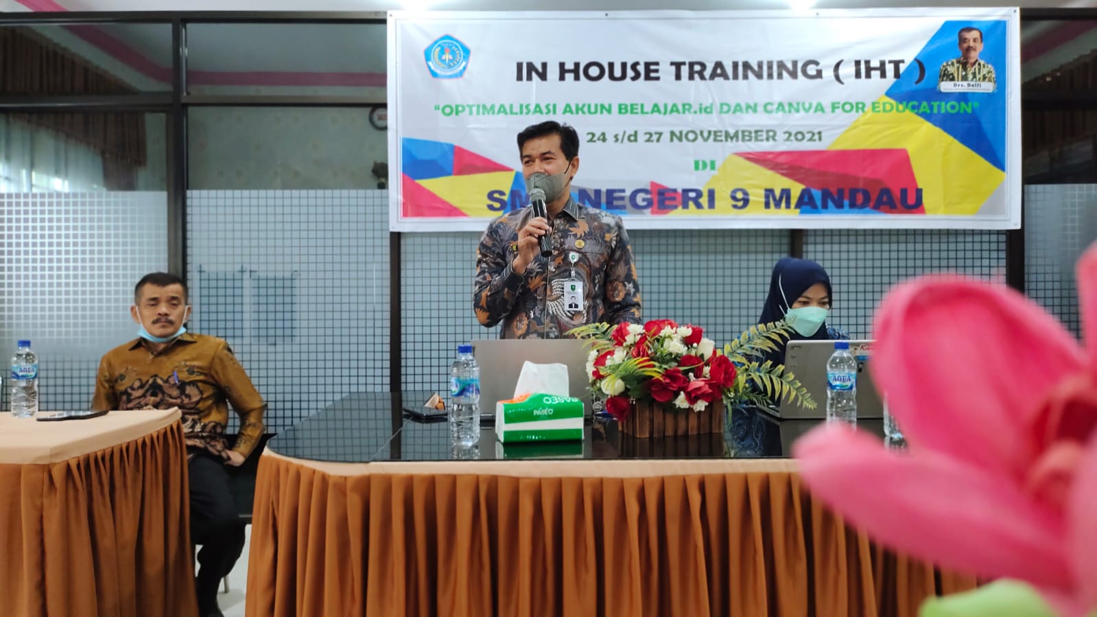 RABU, 24 s/d 27 November 2021 SMA Negeri 9 Mandau mengadakan Pelatihan yang mana bertema tentang " Optimalisasi Akun Belajar.id dan Canva For Education". Pelatihan ini diikuti oleh seluruh Guru yang ada di SMA Negeri 9 Mandau yang bertujuan untuk menjadikan Guru yang Kreatif, Inovatif dan mampu menggunakan Teknologi. Serta membangun semangat siswa dalam Belajar, sehingga siswa mampu menjadi siswa yang aktif dalam belajar. Apalagi pada saat ini teknologi sangat dibutuhkan di bidang pendidikan.