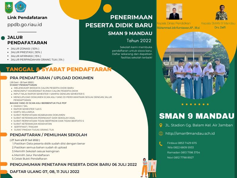 Assalamualaium wr. wb bagi Anak - Anak ibuk yang mau mendaftar di sekolah SMAN 9 Mandau silahkan dilihat beberapa persyaratan berikut . terimakasih